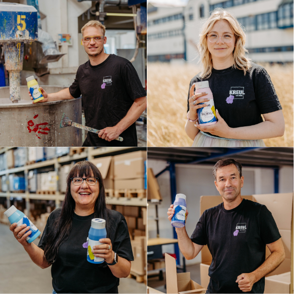Wir von KREUL – ein Team aus rund 100 engagierten Menschen, die jeden Tag mit Leidenschaft daran arbeiten, Farbe in dein Leben zu bringen.