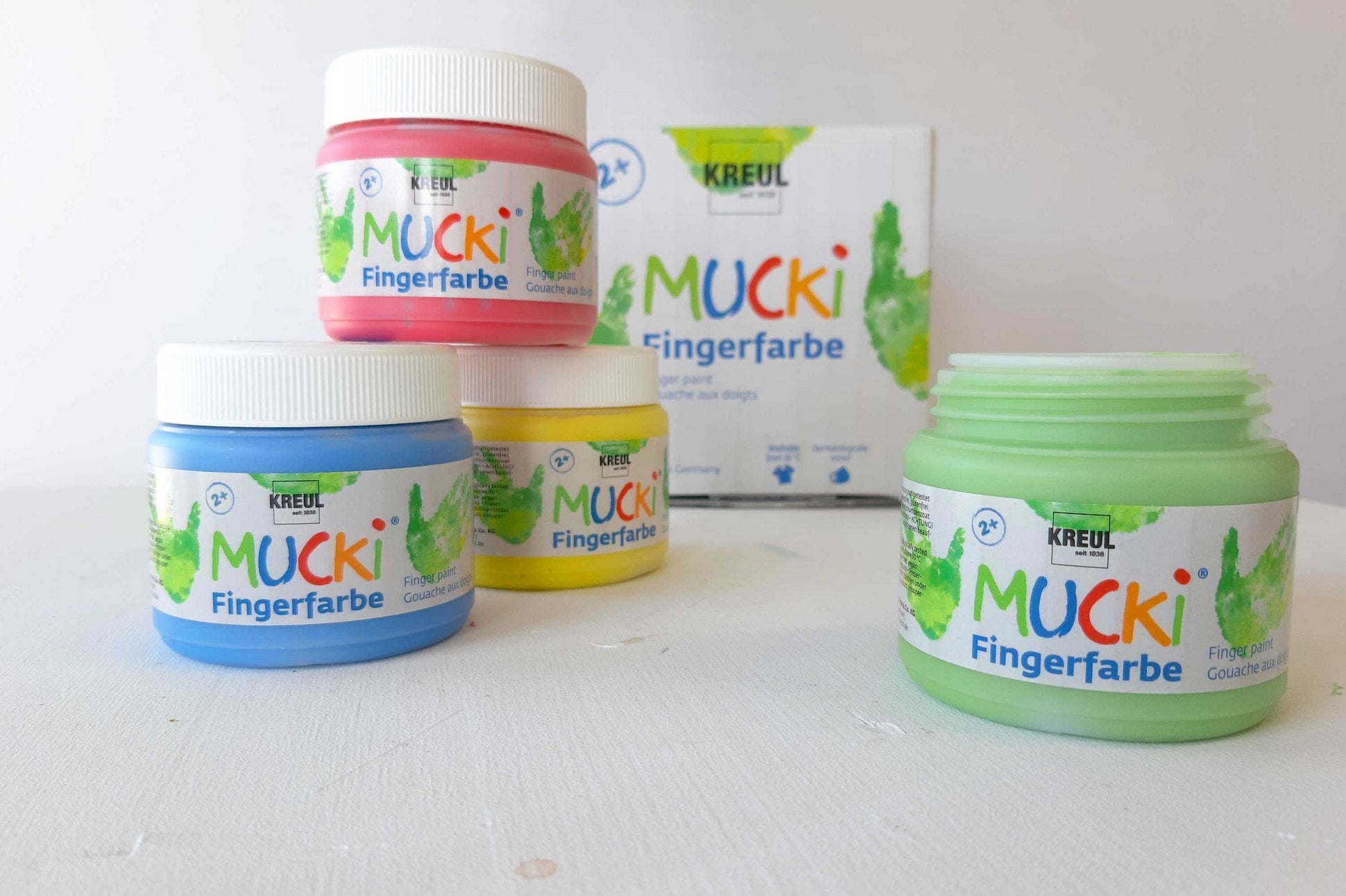 Malen, matschen, klecksen, rühren. Mit den Händen eintauchen und dann herumpatschen: das ist grenzenlose Entdeckerfreude! Wenn die kleinen Finger und Füße mit den leuchtenden MUCKI Fingerfarben in Kontakt kommen, passiert so viel: sensomotorische Fähigkeiten werden geschult, Fingerfertigkeiten verbessert und Freude und Neugier wächst. Was für ein Farberlebnis! Wer auf Entdeckungsreise geht braucht Sicherheit. MUCKI Fingerfarben wurden speziell für Kinder ab 2 Jahren entwickelt. MUCKI Fingerfarben sind dermatologisch getestet, frei von Parabenen, glutenfrei, laktosefrei, nussfrei, titandioxidfrei und vegan. Die Farbe stellen wir fair und sicher in Deutschland her.  Bei dem Bewegungsdrang der kleinen Künstler kann schon mal etwas Farbe daneben gehen. Das ist aber kein Problem: MUCKI Fingerfarbe lässt sich leicht von den Händen und ab 30 °C aus der Kleidung waschen.